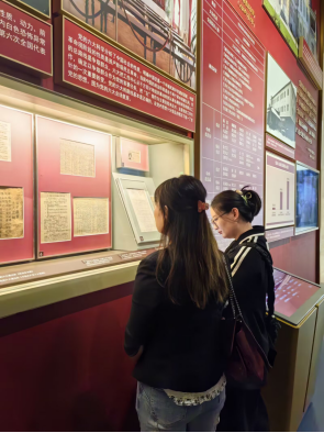 随后,由于本次仅参观了展览馆一层,党员和职工们自由参观了“建立中国共产党 夺取新民主主义革命伟大胜利”展厅。在展厅内,大家认真观看珍贵文物,看到了马克思《布鲁塞尔笔记》第四笔记本、第一个中译本的《共产党宣言》等,深刻体会到革命先辈们为追求真理、创建中国共产党所付出的艰辛努力。虽然缺少讲解员的专业讲解,但大家通过展厅内的文字介绍、多媒体展示,相互交流探讨,依然深入学习到了党的创建历史和新民主主义革命时期的重要历程。参观过程中,大家不时驻足,仔细研读展品背后的故事,分享自己的感悟。党员同志们纷纷表示,这些珍贵的文物和生动的史料,让党史变得更加鲜活,更加深刻地理解了党的初心和使命。职工们也深受教育,对党的发展历程有了更全面的认识,进一步坚定了在党的领导下为教育事业贡献力量的决心。