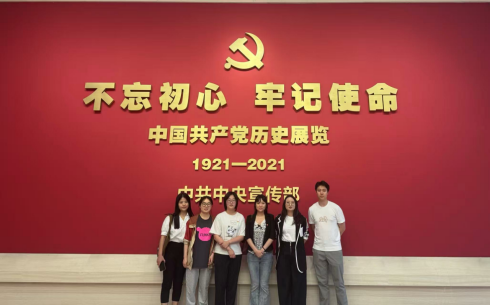 5月30日下午,参与人员准时在学院集合,统一乘车前往中国共产党历史展览馆。到达后,大家有序排队,持身份证通过安检,在西广场南侧入口进入展览馆。进入馆内,首先映入眼帘的是气势恢宏的雕塑《旗帜》,高8.1米,基座高1米,旗帜部分高7.1米、长 21 米,象征着1921年7月1日中国共产党的诞生,让大家瞬间感受到庄严肃穆的氛围。
